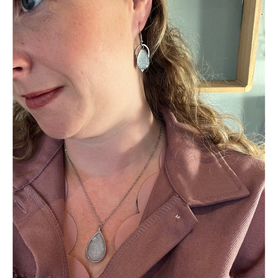 Set van oorbellen en ketting zilver look